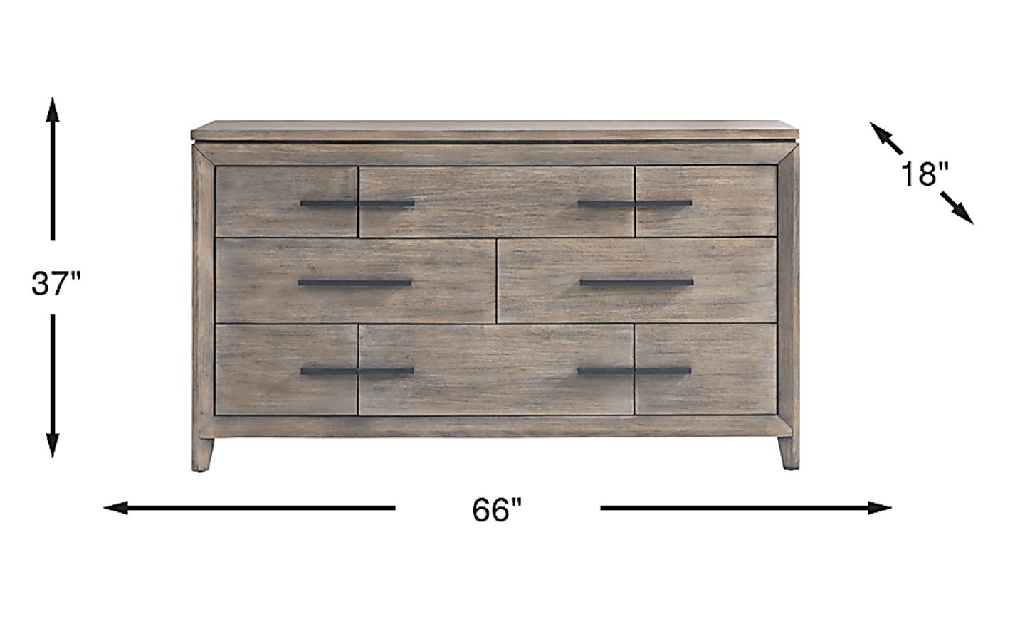A perfect addition to any room, the Dayton Place dresser pairs contemporary style with rustic charm. Easily pairable with existing decor, this piece boasts a gray, distressed-inspired stain atop acacia veneers. Gunmetal-finished bar pulls accentuate this dresser as moulding-inspired trim outlines the edges. Eight spacious drawers grant careful storage for your delicate clothing and accessories.