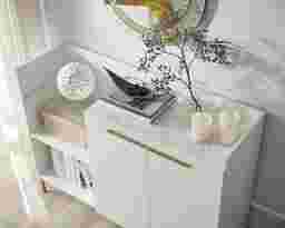 Bring a sophisticated look to your space with this Debore beautifully designed console table. Some features include adjustable shelf height and an attractive faux-marble counter top. Customer assembly is required.