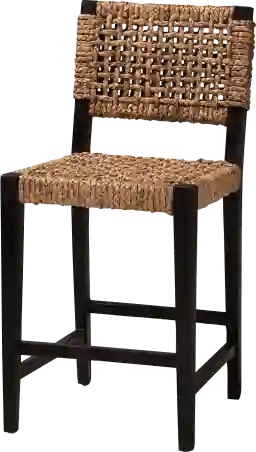 Enjoy a more tropical ambiance in your space with the enchanting Degiorgio brown counter stool. This boho piece is constructed from solid mahogany wood. The backrest and seat are embellished with woven seagrass interlaced to form a smooth embrace. The Degiorgio will arrive fully assembled and features ergonomic footrests on each side for enhanced relaxation. A candid presentation of exotic craftsmanship, the Degiorgio transforms the mood of any occasion. Due to the nature of the natural materials used in this product, it may have variations in areas such as, but not limited to, color, pattern, grain and texture. The hair-like strands of rattan/rattan-fiber are common due to the nature of the material.