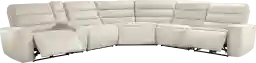 An easy seaside calm settles in like an evening stroll along the serene pacific coastline as the Del Mar collection from Drew & Jonathan brings sophisticated comfort to the center of everyday relaxation. Upholstered with soft woven microfiber in an ivory hue, this modern sectional features sleek track arms, wide seats and channeled backs that add tailored texture and support. Dual power reclining lets you adjust both headrest and footrest with effortless ease, while USB-A and USB-C charging ports on the control panels keep devices close and ready. A built-in console offers hidden cupholders and convenient storage, blending clean design with practical function. Upholstery: 100% polyester.