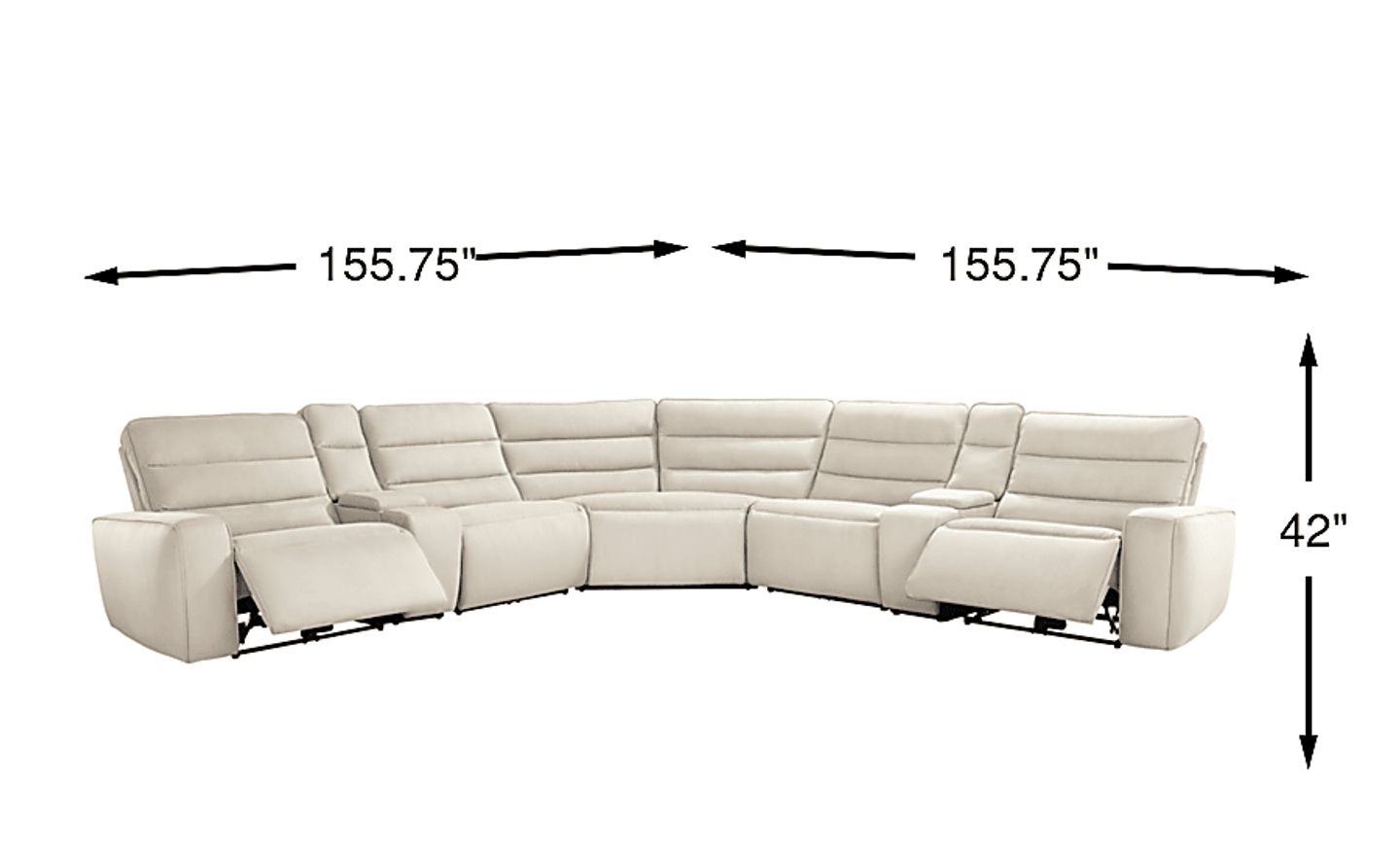 This is a substantial piece of furniture with a footprint of approximately 155.75"w x 155.75"d. Because it features power reclining mechanisms, you should also account for "wall hugger" clearance or ensure there is enough space behind the unit to allow the seats to fully extend. We recommend this sectional for large, open-concept living rooms or dedicated home theater spaces where its 13-foot scale can serve as the room's primary anchor.