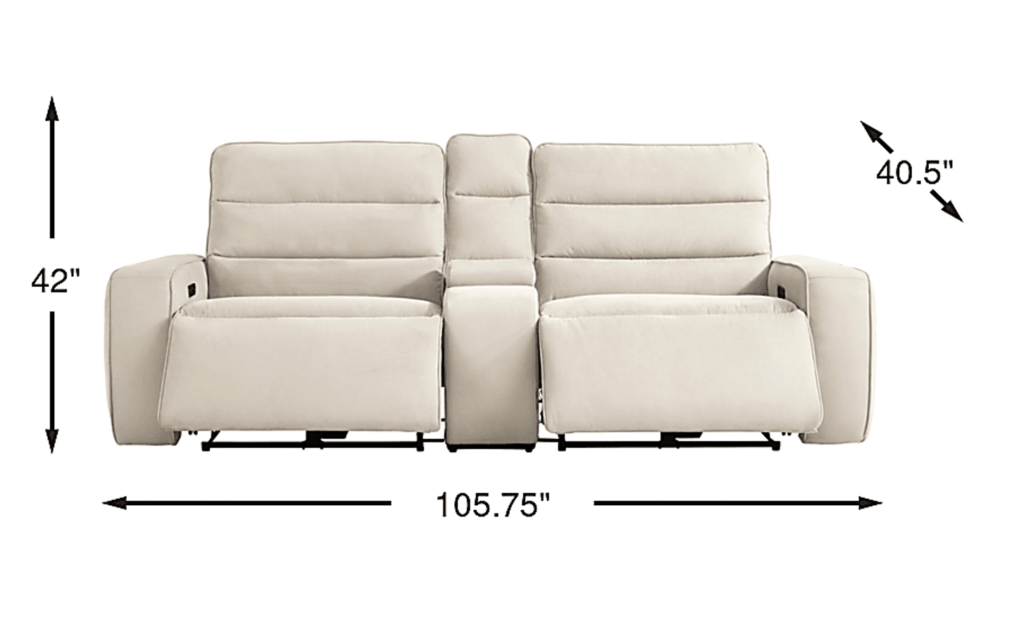 An easy seaside calm settles in like an evening stroll along the serene pacific coastline as the Del Mar collection from Drew & Jonathan brings sophisticated comfort to the center of everyday relaxation. Upholstered with soft woven microfiber in an ivory hue, this modern loveseat features sleek track arms, wide seats and channeled backs that add tailored texture and support. Dual power reclining lets you adjust both headrest and footrest with effortless ease, while USB-A and USB-C charging ports on the control panels keep devices close and ready. A built-in console offers hidden cupholders and convenient storage, blending clean design with practical function. Upholstery: 100% polyester.