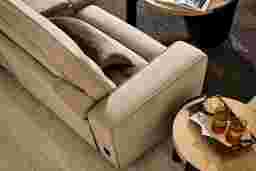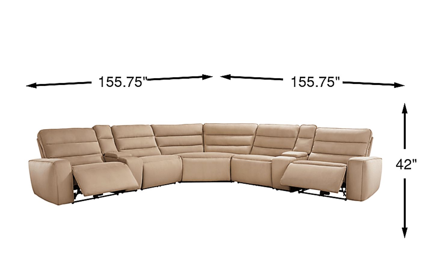 An easy seaside calm settles in like an evening stroll along the serene pacific coastline as the Del Mar collection from Drew & Jonathan brings sophisticated comfort to the center of everyday relaxation. Upholstered with soft woven microfiber in a sandy brown hue, this modern sectional features sleek track arms, wide seats and channeled backs that add tailored texture and support. Dual power reclining lets you adjust both headrest and footrest with effortless ease, while USB-A and USB-C charging ports on the control panels keep devices close and ready. A built-in console offers hidden cupholders and convenient storage, blending clean design with practical function. Upholstery: 100% polyester.