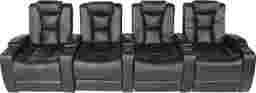 Ideal for a home theater or den, the Del Rio blended leather sectional offers the ultimate in comfort and convenience. Upholstered in durable black blended leather covering wherever the body touches, this contemporary sectional features a cupholder and storage compartment in every armrest. In addition to the padded headrests and padover chaise footrests, this premium sectional offers power reclining, making finding the perfect position as simple as touching a button. Del Rio 4 Pc Blended Leather SectionalBlended leather where the body touches.