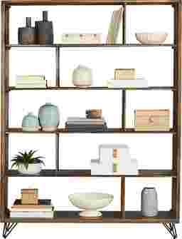 Simple, sophisticated and altogether practical, the Del Sol room divider adds warmth and charm to any surroundings. This mid-modern urban beauty is constructed of pine wood solids and pine veneers in a luxurious brown, delivering ample storage space with geometric shelving designed in eye-catching style.