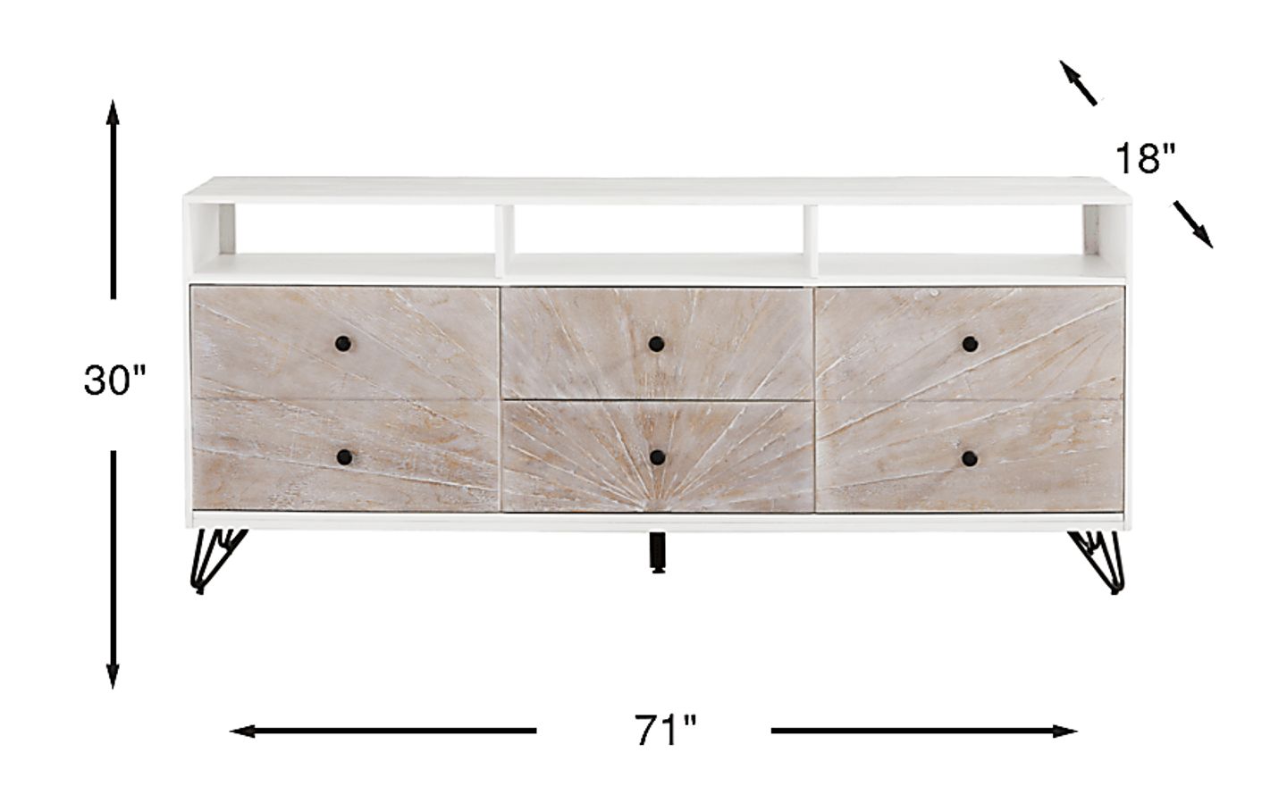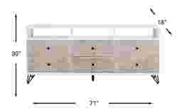 This console's 71-inch width is ideally scaled for televisions up to 75 inches (measured diagonally). To achieve a balanced and intentional look, design experts recommend choosing a stand that is at least a few inches wider than the TV screen itself. For a 65-inch television, which typically measures about 57 inches wide, this console provides approximately 7 inches of clearance on either side, creating a stable and visually grounded focal point for your living room.