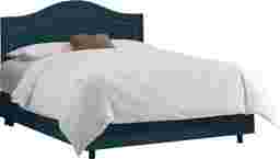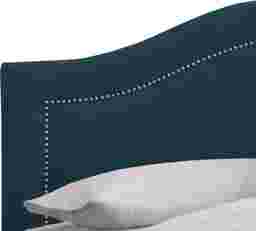 Upholstered in a soft micro-suede fabric in a chic shade of navy, the Delana bed is a trendy addition to your home. Accented with a row of decorative nailheads along the headboard, subtle curves and straight lines add plenty of eye appeal to this contemporary piece. This bed includes a metal bedframe. Box spring and mattress required, not included. 100% velvet polyester. Easy assembly. Spot clean only.