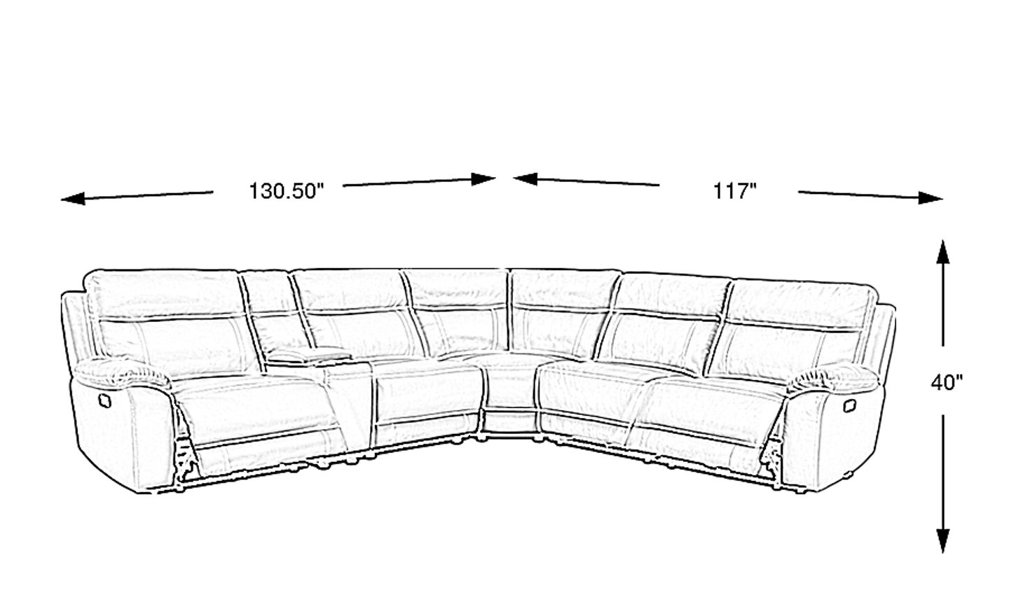With overall dimensions of 130.5"w x 117"d, this sectional is best suited for larger living areas or open-concept floor plans. When planning your layout, it is important to account for the reclining movement; while standard power recliners often require 4 to 6 inches of wall clearance to fully extend, we recommend measuring your specific space to ensure the footrests can deploy without obstruction.