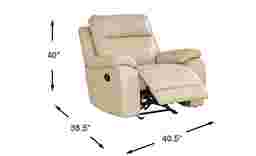 With charismatic charm and an inner glow through each enticing curve and corner, the Delaney Point recliner's refined elegance feels as easy as a Sunday afternoon and as finely appointed as an Italian suit. Beige top grain leather where the body touches is accented with evocative top-stitched seams throughout. Luscious pillow arms complement the wide seat, inviting long sessions of luxurious relaxation. With the pull of a small handle the footrest extends in a classic reclining motion. Upholstery: Top grain leather where the body touches and polyurethane fabric sides and backs. Leather is a durable, low maintenance product, however, general regular maintenance is necessary. To keep your leather clean, vacuum it regularly, removing any dust, and clean it with water and a mild non-detergent soap.