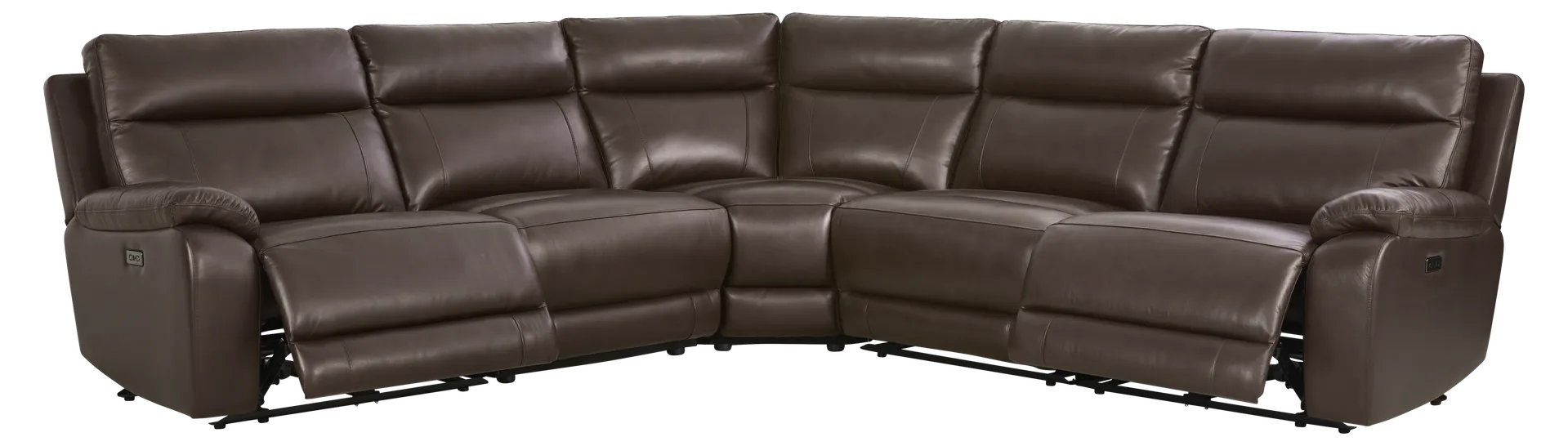 With charismatic charm and an inner glow through each enticing curve and corner, the Delaney Point sectional's refined elegance feels as easy as a Sunday afternoon and as finely appointed as an Italian suit. Brown top grain leather where the body touches is accented with evocative top-stitched seams throughout. Luscious pillow arms complement the wide seats, inviting long sessions of luxurious relaxation. Power reclining includes adjustable footrests, with USB-A and USB-C charging ports on control panels mounted to the armrests. Upholstery: Top grain leather where the body touches and polyurethane fabric sides and backs. Leather is a durable, low maintenance product, however, general regular maintenance is necessary. To keep your leather clean, vacuum it regularly, removing any dust, and clean it with water and a mild non-detergent soap.