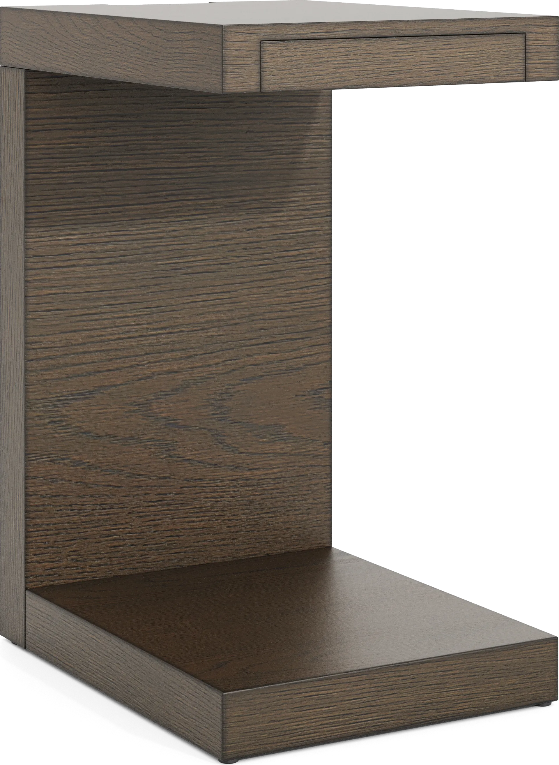 Celebrate good times and intimate evenings with the Delano end table's warm style and clever, convenient design. This contemporary accent table in brown includes features that make it much more than a handsome spot to place a drink. Above an open shelf and tall base, the tabletop conceals a small drawer, perfect for a book or remote. Behind the tabletop is a power station with USB ports and two full-size power outlets, so everyone stays charged and happy when it's time to relax.