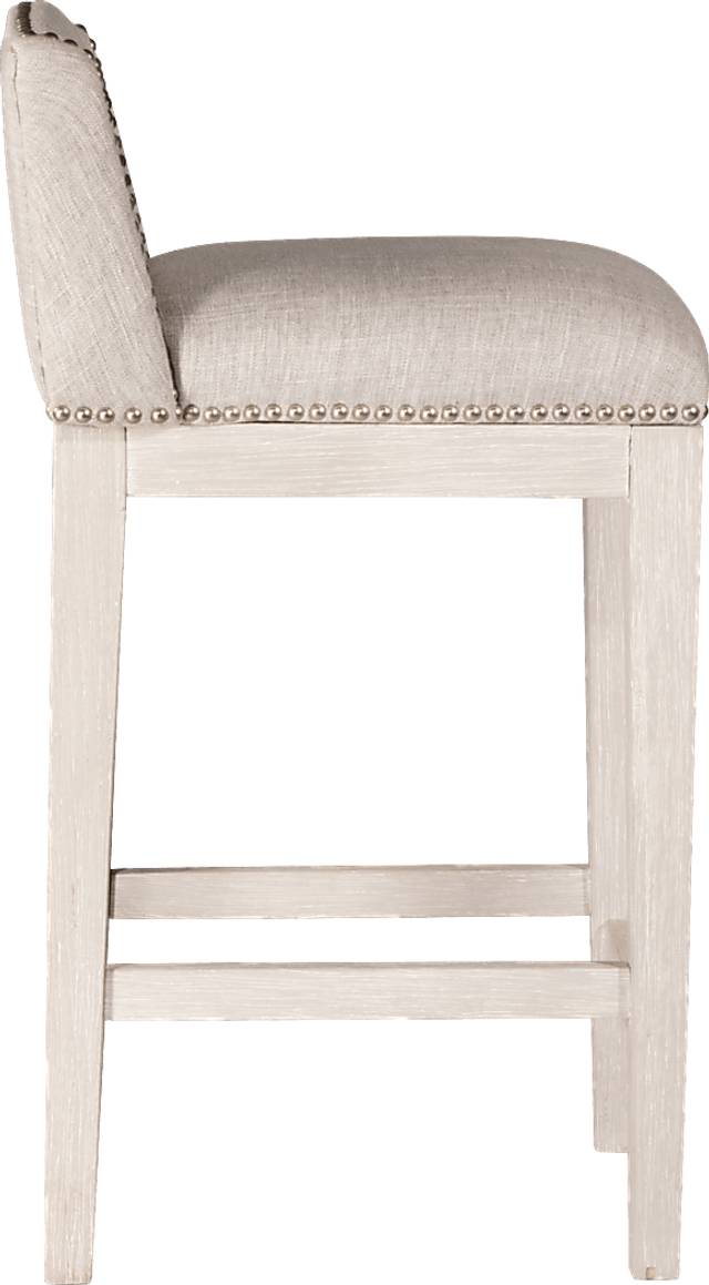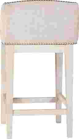 Compact design meets casual comfort in the on trend Delany counter stool. Constructed of wood with a white, textured finish, the Delany stool is highlighted by its low back design, and beautiful silver upholstery with metallic stud detailing. Perfect for your kitchen or bar area, these streamlined low profile non swivel stools ship in pairs. Customer assembly is required.
