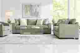 Like a gentle breeze on a warm day, the Delcrest collection is a breath of fresh air with its calming hues and soothing ambiance. This contemporary living room is upholstered in a plush misty green colored chenille, and its graceful silhouette is enhanced by rounded wedge arms and tapered square legs in a warm brown finish. Woven accent pillows fully set the scene with their complimentary mosaic pattern. Upholstery: 100% Polyester. Cleaning Instructions: Use water based cleaning agents or foam.