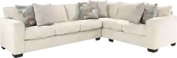 Like a gentle breeze on a warm day, the Delcrest collection is a breath of fresh air with its calming hues and soothing ambiance. This contemporary sectional is upholstered in a plush white colored chenille, and its graceful silhouette is enhanced by rounded wedge arms and tapered square legs in a warm brown finish. Woven accent pillows fully set the scene with their complimentary mosaic pattern. Upholstery: 100% Polyester.