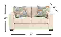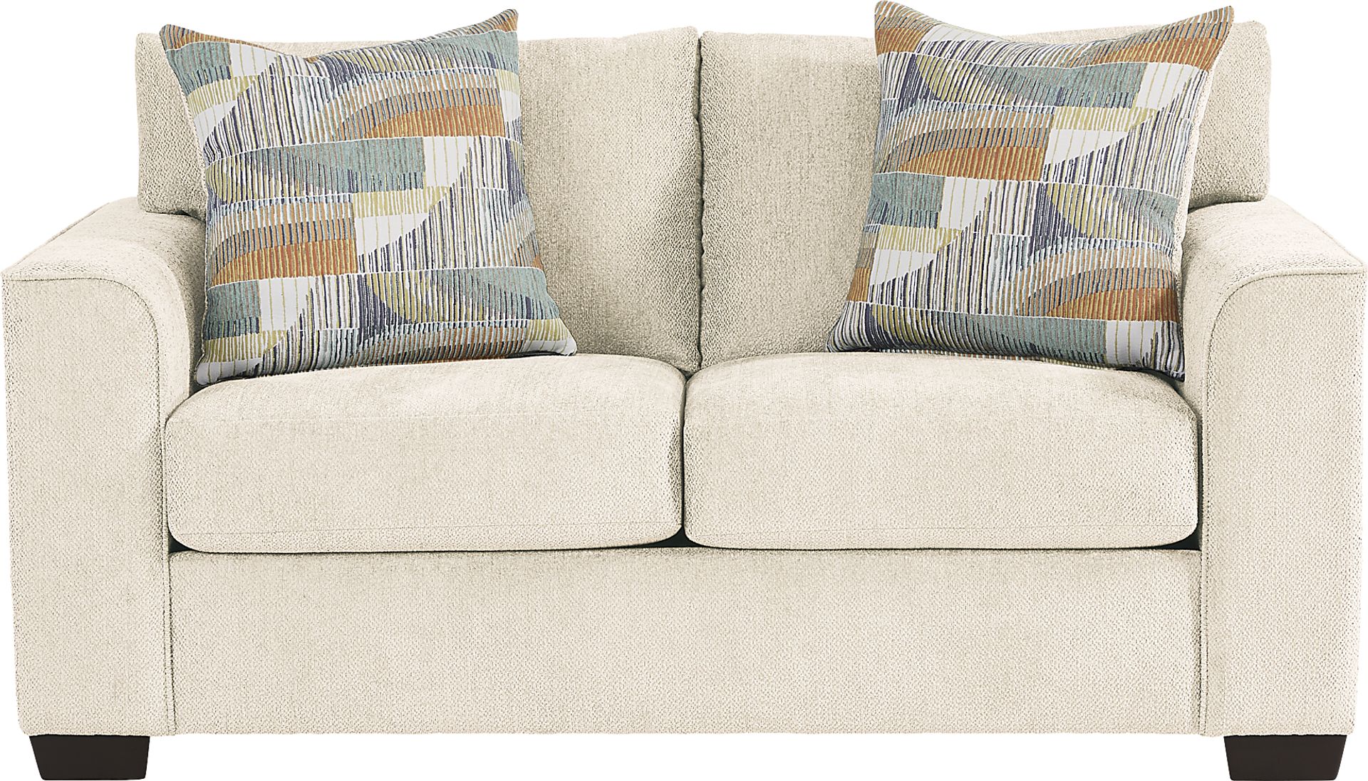 Like a gentle breeze on a warm day, the Delcrest collection is a breath of fresh air with its calming hues and soothing ambiance. This contemporary loveseat is upholstered in a plush white colored chenille, and its graceful silhouette is enhanced by rounded wedge arms and tapered square legs in a warm brown finish. Woven accent pillows fully set the scene with their complimentary mosaic pattern. Upholstery: 100% Polyester.