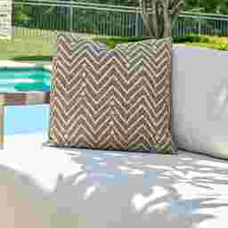 While this pillow is designed for outdoor durability, it is water-resistant rather than fully waterproof. The Sunbrella fabric is breathable to prevent trapped moisture, and the plush microdenier polyester fill is protected by a dedicated water-resistant inner casing. Our experts recommend bringing the pillows inside or using furniture covers during heavy rain or prolonged periods of bad weather to maintain the fill’s loft and prevent the inner casing from becoming saturated.