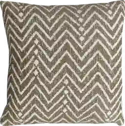The Deleha pillow has a toffee ground showcasing a cream tribal geometric inspired pattern in Sunbrella solution dyed acrylic. Complete with an invisible zipper and filled with a plush, microdenier polyester inside a water-resistant casing.