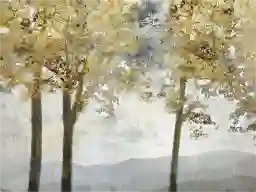 The transitional style of this piece allows it to bridge the gap between traditional and modern interiors. The vibrant yellow leaves provide an excellent "pop" of color against neutral backdrops like gray, cream, or navy. Based on our interior design expertise, you can create a cohesive theme by echoing the yellow tones of the trees in smaller accents throughout the room, such as a textured throw pillow or a decorative ceramic vase on a nearby side table.