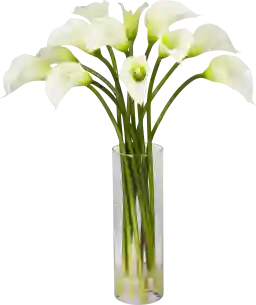 To maintain the "understated radiance" of your silk lily arrangement, our care recommendations suggest regular light dusting. Use a soft-bristled brush or a hairdryer on a cool, low setting to gently remove dust from the petals and large green leaves. Because this arrangement features a "faux water" resin, you should never add real water to the vase, as it can damage the silk fibers and cloud the resin base.