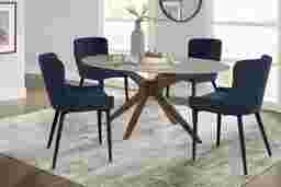 Delmon White 5 Pc Oval Dining Set With Navy Side Chairs
