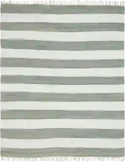 The subtle gray and cream stripes on this rug can serve as a functional design tool. Linear patterns have a "directional" effect; placing the stripes parallel to the longest wall can make a narrow room feel more expansive. Additionally, the variegated tones in the braided cotton help hide minor wear and foot traffic, making it a practical yet stylish choice for frequently used spaces like bedrooms or family rooms.