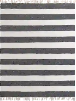 The 100% organic cotton construction makes this rug highly breathable, a significant advantage in humid or coastal environments where dense, synthetic piles might trap moisture. Its navy and cream striped pattern is specifically designed to complement coastal and casual decors. To ensure the rug remains in top condition in these climates, we suggest placing it in a well-ventilated room and rotating it frequently to prevent any moisture from settling in one area.