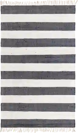 Chindi rugs are sought after by amateur and professional designers alike for their earthy, boho flavor. Handwoven in India of 100% organic cotton fibers, the Delonn Collection takes a new twist on the classic braided pattern. Cream stripes pair equally well with gray, navy, and beige to create an all-natural neutral that goes with everything. Made from 100% Cotton, this handmade rug should be treated more carefully than machine-made rugs due to the artisanal nature in which they are created. Remove any stains immediately by blotting with a clean cloth or sponge. Avoid using water as that might damage and discolor the natural fibers, instead, for tougher stains use a dry rug shampoo or baking soda. For dry debris take the rug outdoors and give it a good shake. Rotate for even wear.