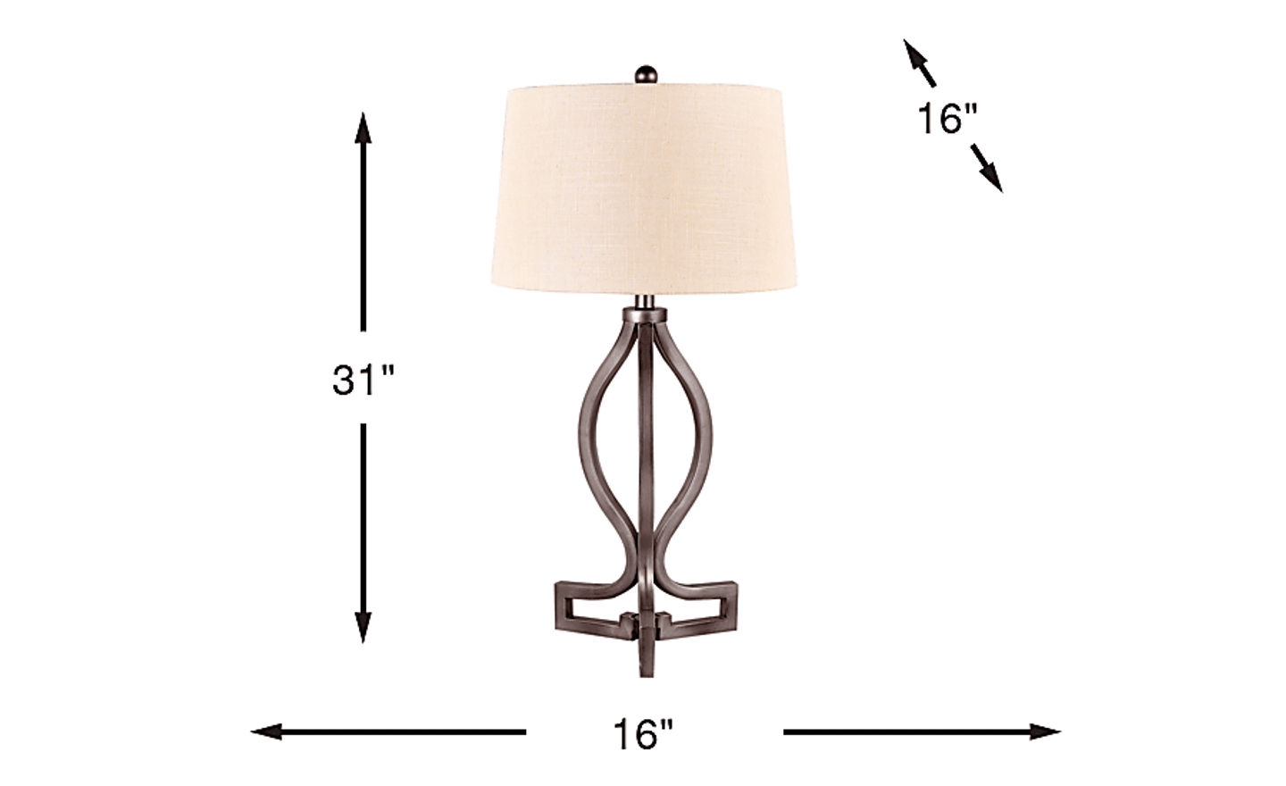 With its delightful free-form shape and iron crafting the Delora lamp makes a wonderful addition to almost any decor. The lamp's three-way switch accommodates a maximum 150-watt bulb (not included). An off-white drum shaped shade adds the perfect topper.