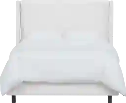 The Delorna I square top king bed features a gentle curved wingback design alongside a plain front. These elements blend perfectly to lend a touch of style and create a piece that will be the center of your bedroom design. The made to order headboard matches up easily with the included metal frame and hand upholstered rails making assembly simple. An inclusive transitional design makes it an easy addition to any bedroom space. The bed is manufactured in Illinois and highlights a beautiful boucle fabric. Customer assembly is required. This piece is made to order and may take up to 6 weeks to deliver.