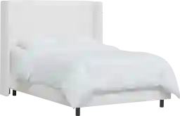 With overall dimensions of 81"W x 85"D, this bed has a slightly larger footprint than a standard king mattress due to its stylish wingback headboard and upholstered rails. To ensure comfortable movement and space for nightstands, we recommend a bedroom size of at least 12' x 12'. This allows for the 55-inch tall headboard to serve as a focal point without making the space feel congested.