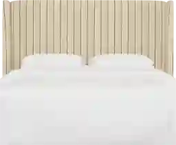 This headboard establishes high standards of craftsmanship as it is fully hand-upholstered and manufactured in Illinois. Unlike mass-produced items, it is made-to-order, ensuring that the striped fabric is precisely aligned and the wingback curves are expertly finished. The use of a linen-cotton blend further enhances its quality, offering a breathable, high-end texture that synthetic fabrics cannot replicate.