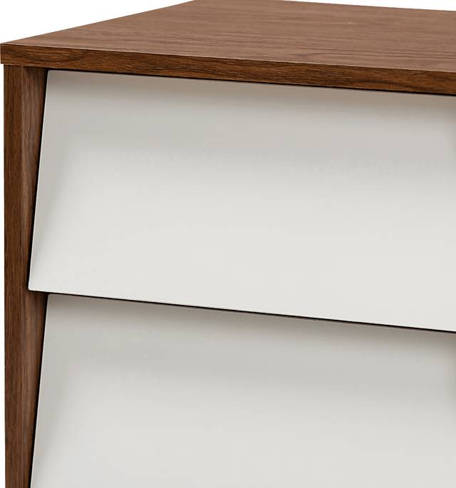 Introduce the appeal of mid-century flair to your space with the enticing Delwiche white 3pc bedroom set. This stunning set includes one dresser, one chest, and one nightstand comprised of wood. Each piece features slanted drawers for an ergonomic design that lends visual texture and depth. The Delwiche utilizes angled legs for excellent stability and support. Setting a tone of classic refinement, the Delwiche elevates any bedroom layout. Customer assembly is required.