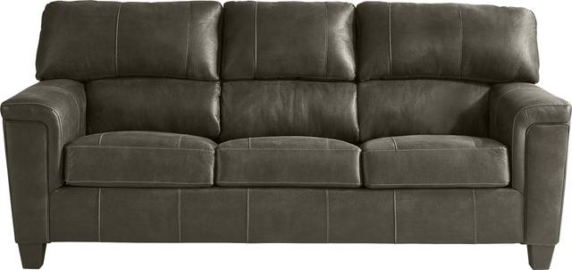 Refresh your living room with the versatile Denio sleeper sofa. Transitional in style, the sofa comes in an inviting charcoal color and is upholstered in durable, plush microfiber fabric. Perfect for hosting overnight guests or enjoying a peaceful nap of your own, this piece features loose seat and attached bustle back cushions for long-lasting comfort. The sinuous wire seating system and reinforced corner blocks provide stability and strong support, while padded arms and tapered legs in a brown finish add to the classic look. A queen size Sealy Royale mattress pulls out to create a relaxing setup. 100% Polyester