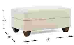 Its rectangular 43" x 26" dimensions and generous surface area make it a versatile alternative to a traditional coffee table. Because it features a plush, upholstered top with elegant welted seams, we recommend using a large decorative tray to provide a stable, level surface for drinks and remotes. This is an excellent "kid-safe" choice, as the soft, padded edges and lack of sharp corners offer a safer environment for toddlers compared to wood or glass tables.