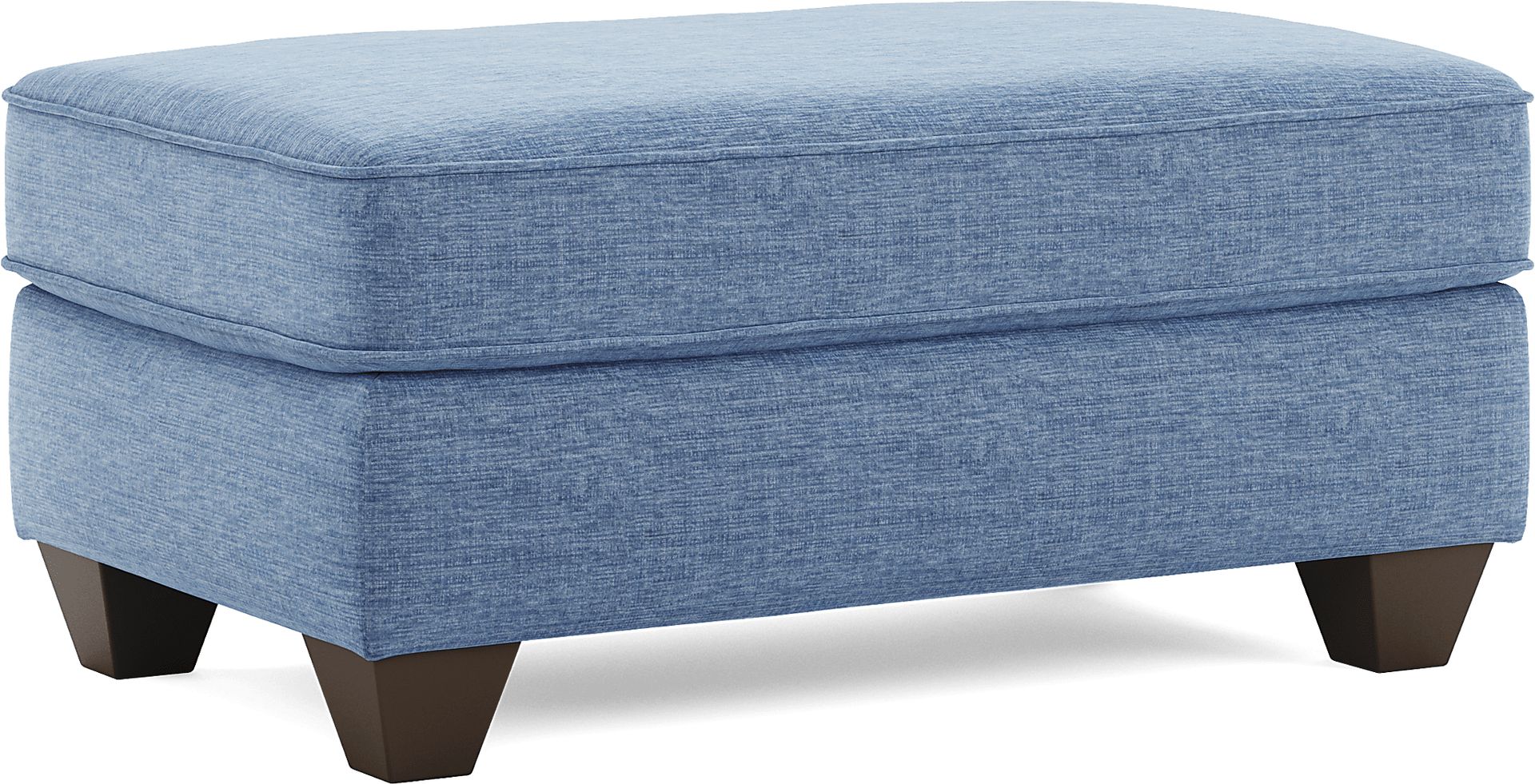 This ottoman is specifically designed to coordinate with the Dennin Heights collection, which includes a matching blue sofa, loveseat, and chair. By using the same blue woven fabric and signature welted seam detailing, you can easily create a professional, "designer-level" look that feels intentional and cohesive throughout your living space.