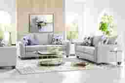 Maintaining the fresh look of your Dennin Heights Gray Sofa's woven fabric is straightforward. For routine care, simply dust regularly with a soft cloth. For spills or stains, we recommend gently blotting with a clean rag dampened with warm water and a mild soap or light detergent. Always avoid harsh chemicals to preserve the fabric's integrity, ensuring your sofa remains a beautiful centerpiece in your home.