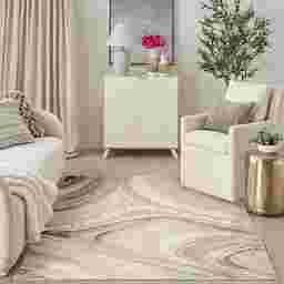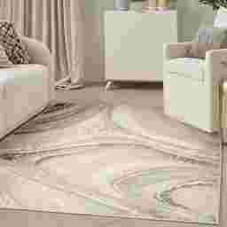 Absolutely. This contemporary rug features a swirling, marble-inspired design that acts as a bridge between organic and modern styles. The abstract pattern provides enough visual interest to serve as a focal point in a minimalist room, while the neutral cream and gray palette ensures it won't clash with bold furniture pieces. The addition of metallic gold accents makes it a particularly strong match for furniture featuring brass or chrome hardware.