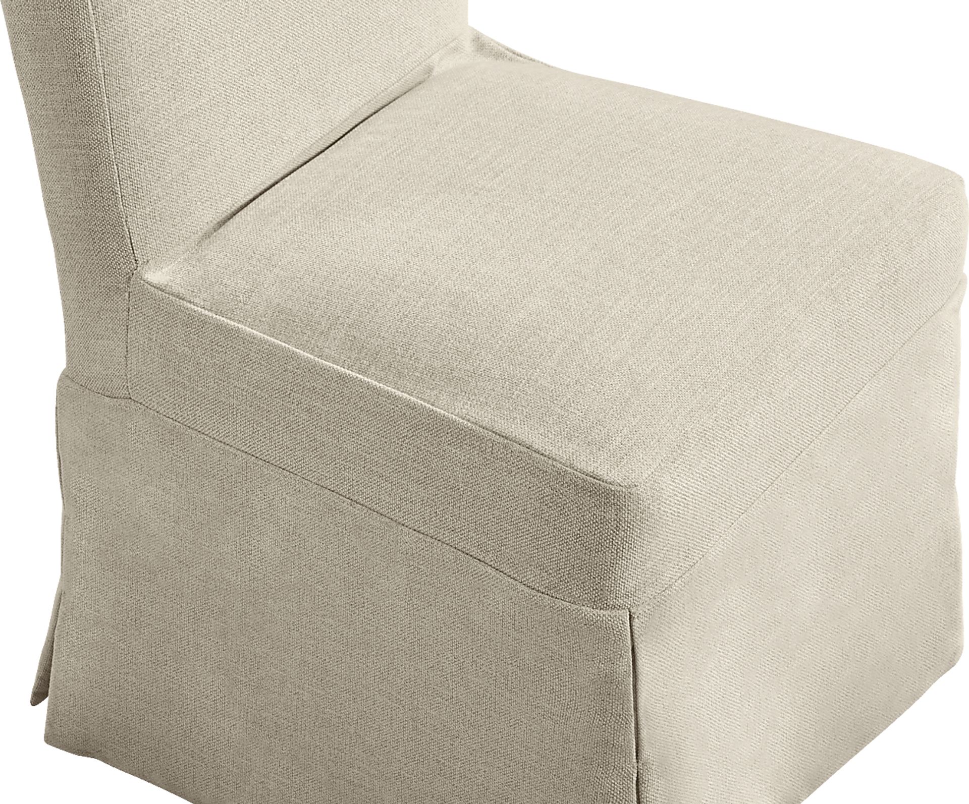 Get-togethers with friends and nightly meals with the family take on a special fine dining glamour when enjoyed with the Derry Lane dining chair. This upholstered seat is crafted with a frame of hardwood solids and a slipcover in ivory white that's easy to remove and maintain. A skirt covers the legs of the chair and blends elegantly into the full-length back cushion, which is set at an angle that's sure to invite easy post-meal conversations