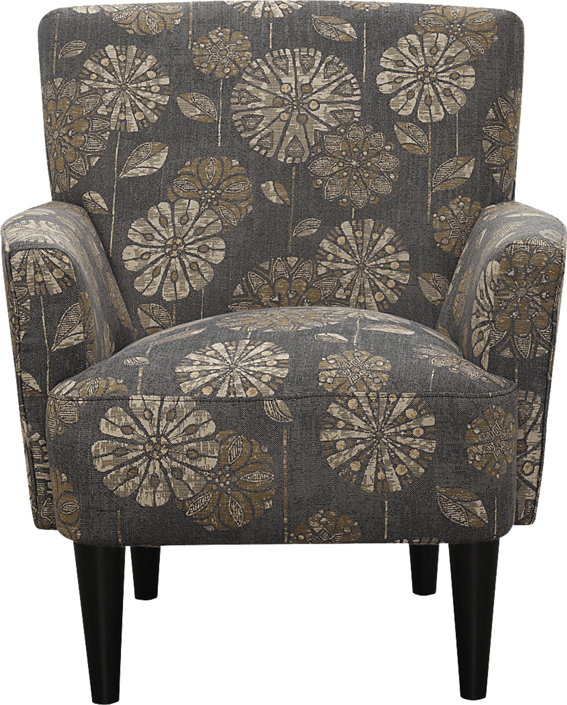 Bring a touch of personality and class to your home with the Desco accent chair. Finished in gray flower print polyester with pad-over pillow top arms. The frame is made of solid and engineered wood. Built with comfort and durability in mind, the desco accent chair includes a sinuous spring frame and pocketed coil cushion construction. Customer assembly is required.