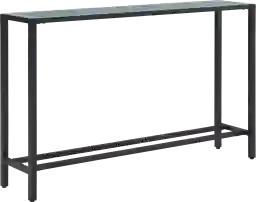 Accent a la modern. This narrow Desner console table elongates any room with its slim features. Metallic black holds a mirrored tabletop, crafting a functional hub for keys and everyday entryway items. This skinny console table tucks away behind your sofa