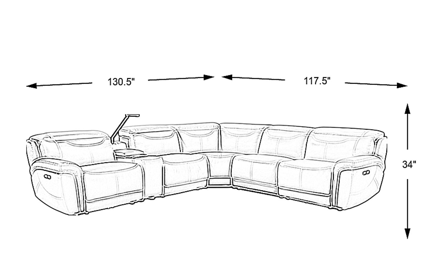 Luxuriously designed, the Devero sectional boasts statement-making style and appeal. Perfect for large families, this sectional offers sumptuous seating for gatherings, movie nights and more. Dual power adjustable headrests and footrests grant customized comfort as padded arm, seat and back cushions provide soft support. Packed with features, the console provides concealed storage, hidden stainless steel cupholders, a wireless charging station and a USB port within reach. Plus, a touch reading light makes it easy to read from the comfort of your seat. Stitch detailing, curved track arms and gray leather upholstery complete the transitional look. Top grain leather where the body touches and vinyl sides and backs.