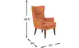 Regal in posture with an irresistible look of comfort and warmth, the Devlin accent chair will draw guests into its inviting embrace. Upholstered in russet colored textured boucle fabric, this modern piece boasts a tall winged back offering its intimate embrace. Stylish flare arms provide added comfort while tapered wood legs in a warm brown finish complete the look. Upholstery: 100% polyester.