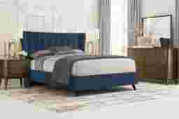 Devon Loft Walnut 5 Pc Bedroom with Nanton Park Blue King Upholstered Bed