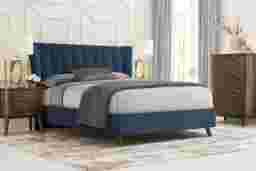 Devon Loft Walnut 5 Pc Bedroom with Nanton Park Blue Queen Upholstered Bed
