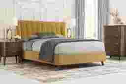 Devon Loft Walnut 5 Pc Bedroom with Nanton Park Yellow King Upholstered Bed