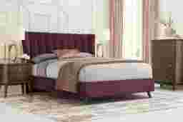 Fashion your bedroom with the chic style of the extravagant Nanton Park bed. Fully upholstered in plush red velvet, this bed offers a contemporary look with a headboard that features a gorgeous wingback style complete with vertically tufted channels. Mattress and foundation (if required) sold separately.