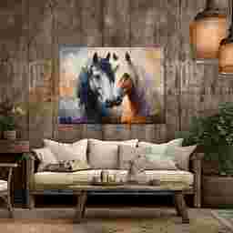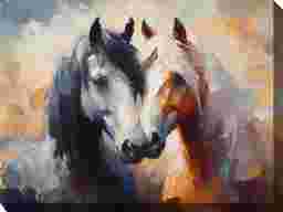Like warmth lingering on the plains after the setting sun gives way to dusk, the Devotion outdoor canvas's gentle palette of cloudy orange into dark gray offers a comforting moment with each glance. The pair of horses in this accent are rendered with a tempera effect on artist canvas, which is gallery wrapped on all-weather poly-vinyl stretcher bars and coated with UV- and waterproof lacquer to prevent fading. Designed to withstand 60 mile per hour winds, this print includes simple and effective hardware for outdoor installation. This outdoor canvas art can be placed in any outdoor location with direct exposure to the elements.