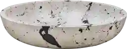 Inspired by the clean lines and bold feel of modern art, this bowl is handcrafted from natural white limestone with black accents. The contrast between the smooth stone and bold detailing highlights the artisan craftsmanship, making it a statement piece for any space.