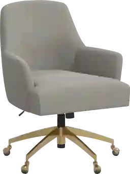 The soft curvature of the Dewstreet swivel desk chair envelopes the back for incredible comfort. The sleek upholstery and stream-lined shape make it a versatile addition to any office space. Upholstered in Linen fabric and a 360-degree swivel mechanism that adjusts for height and features metal casters for ease of movement. Customer assembly is required.