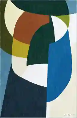 An abstract rug featuring a rich palette of blue, burgundy, green, and beige serves as an excellent "anchor" piece that can unify a room's design. To create a cohesive look, our experts suggest selecting one or two of the rug’s secondary colors—such as the burgundy or deep green—and echoing those hues in your accent pillows, wall art, or decorative vases. Because this rug features a mid-century modern influence, it pairs exceptionally well with tapered-leg wood furniture and minimalist decor.